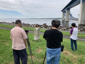 新曲タイトルのイメージから撮影場所は海にしたいというメンバーの希望から当初三浦方面や大洗方面への遠征案も浮上しましたが、調整が難航したことから都内の水辺でという事になり、若洲地区の臨海公園での撮影と相成りました。