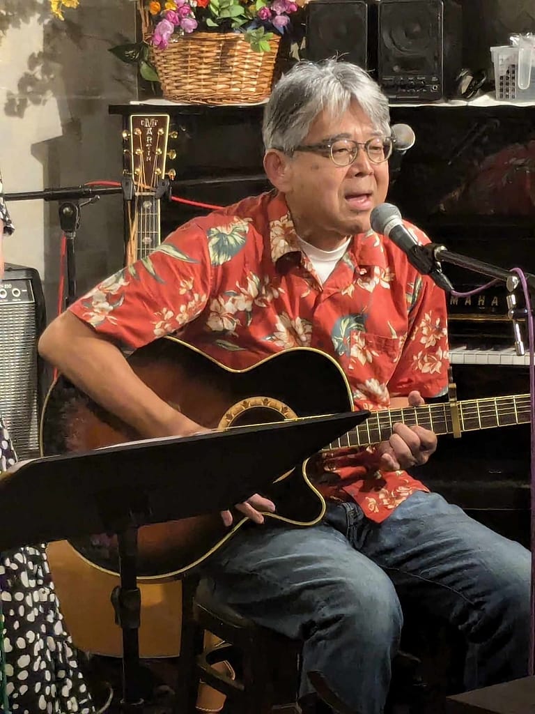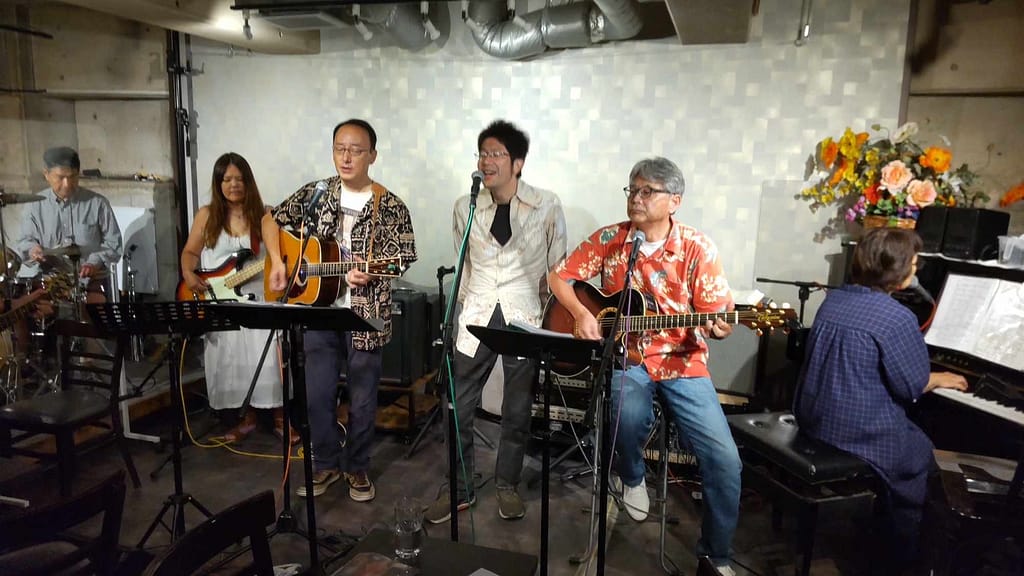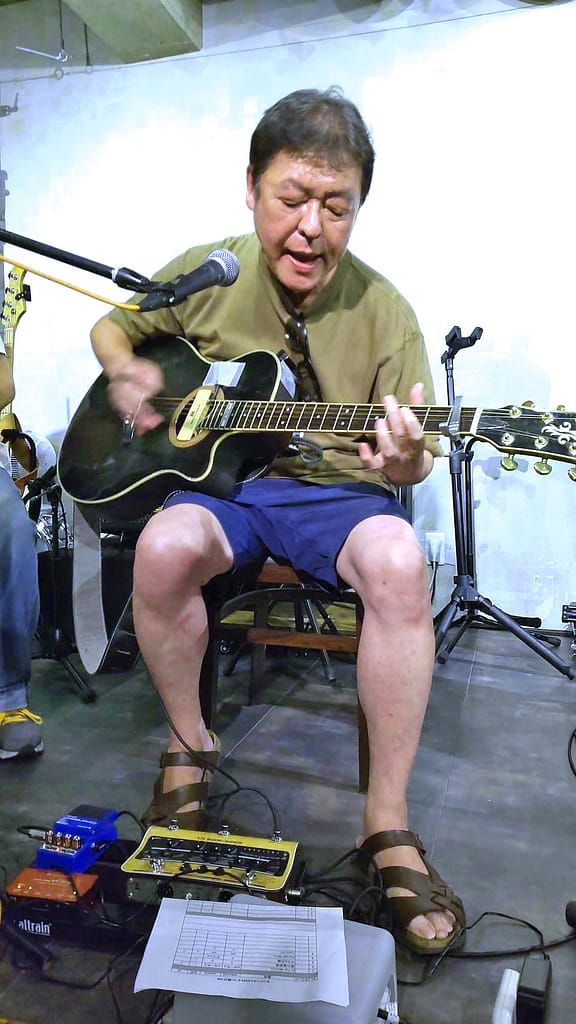 Liveの進行はMisty含めて5ユニット各5曲ずつ演奏後、自由参加のWest Coastメドレーセッション大会となり、もう学園祭気分のノリでuraraも三曲程(You‘ve got a friend、Heart of gold、Teach your children)アコギで参加させていただきました。